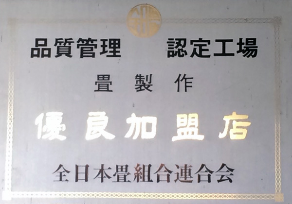 ・品質管理認定工場 畳製作 優良加盟店(全日本畳組合連合会)