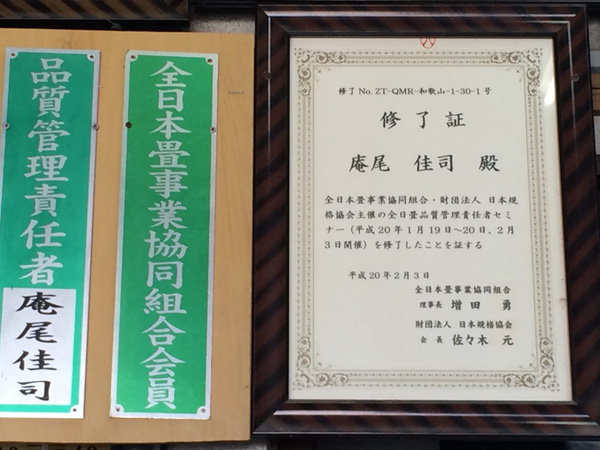 ・品質管理認定工場 畳製作 優良加盟店(全日本畳組合連合会)